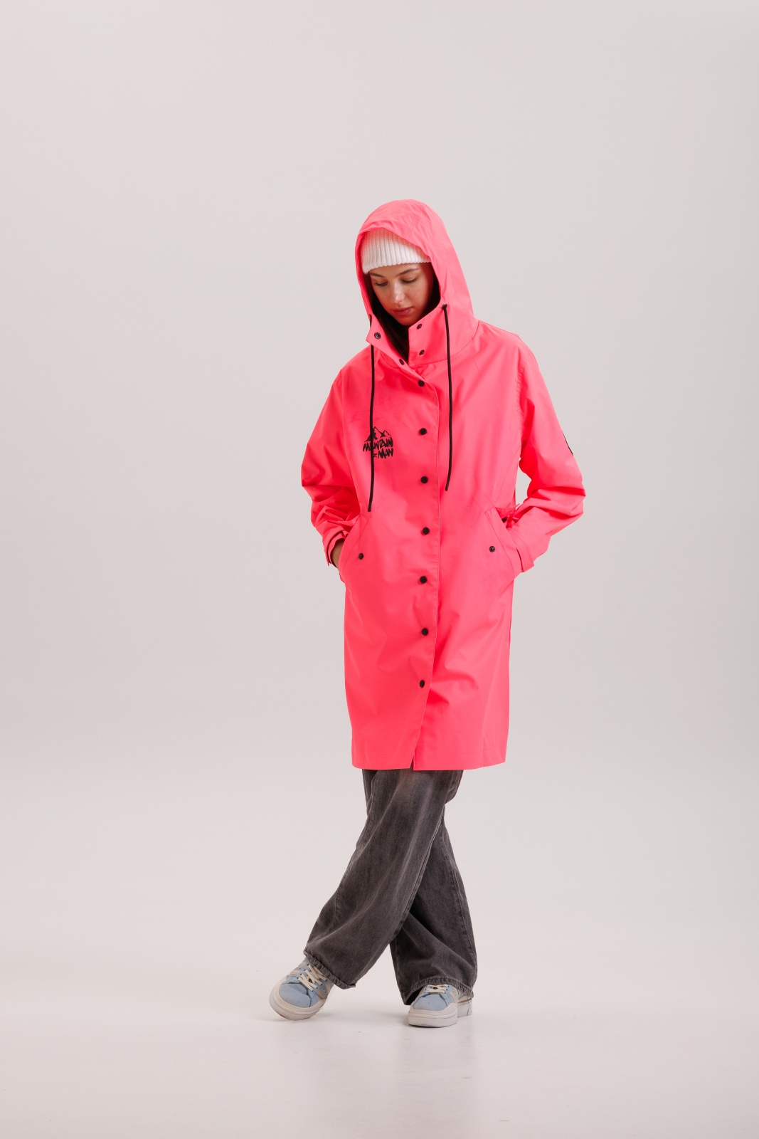 Нежный розовый цвет привносит свежесть и позитив в повседневный образ. Модель разработана в универсальном стиле, подходит как мужчинам, так и женщинам. Плащ комфортно носится при температуре от -5°C до +10°C, идеально для межсезонья.