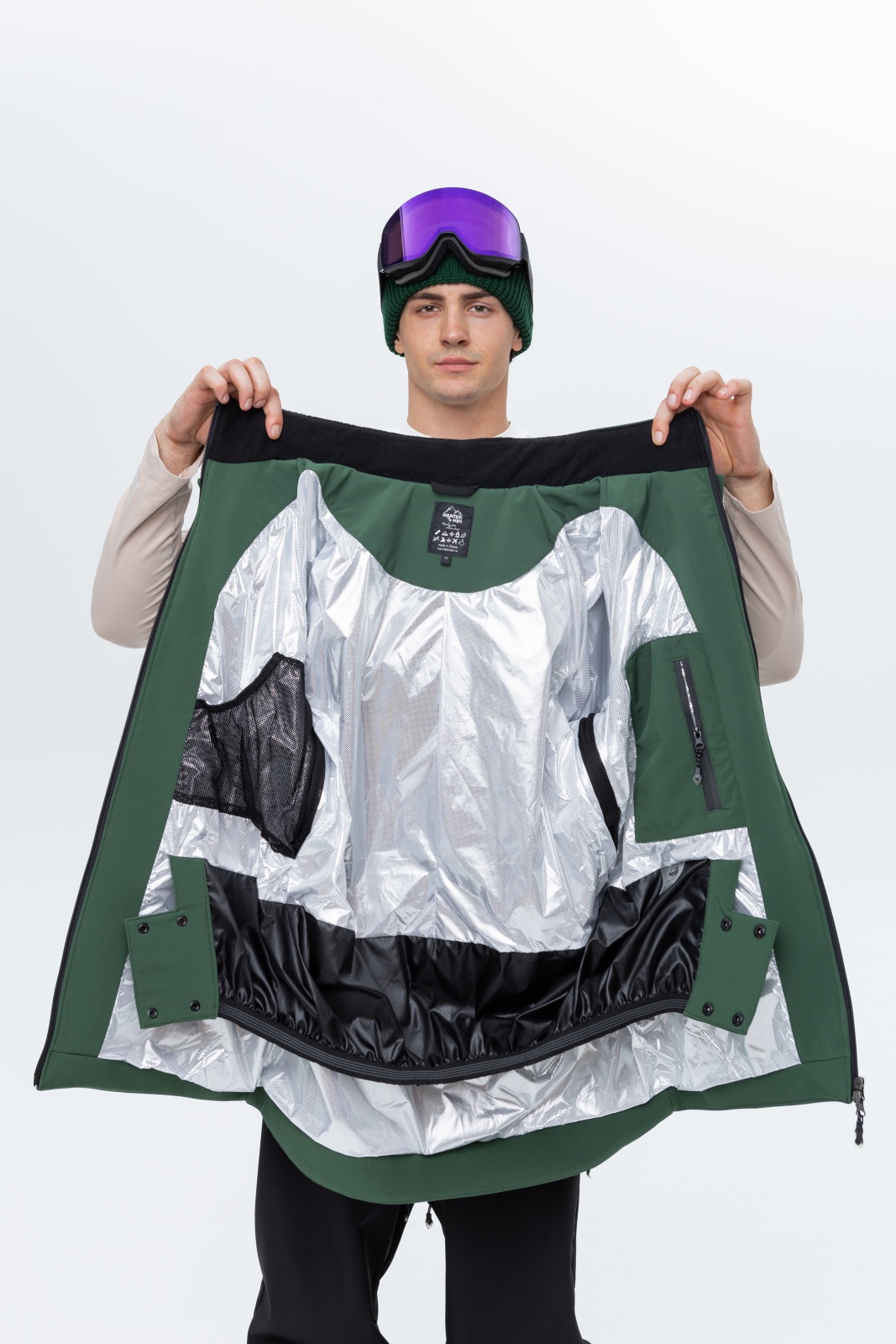 • Фольгированная подкладка — работает как термозащита: сохраняет тепло, не давая телу перегреться.