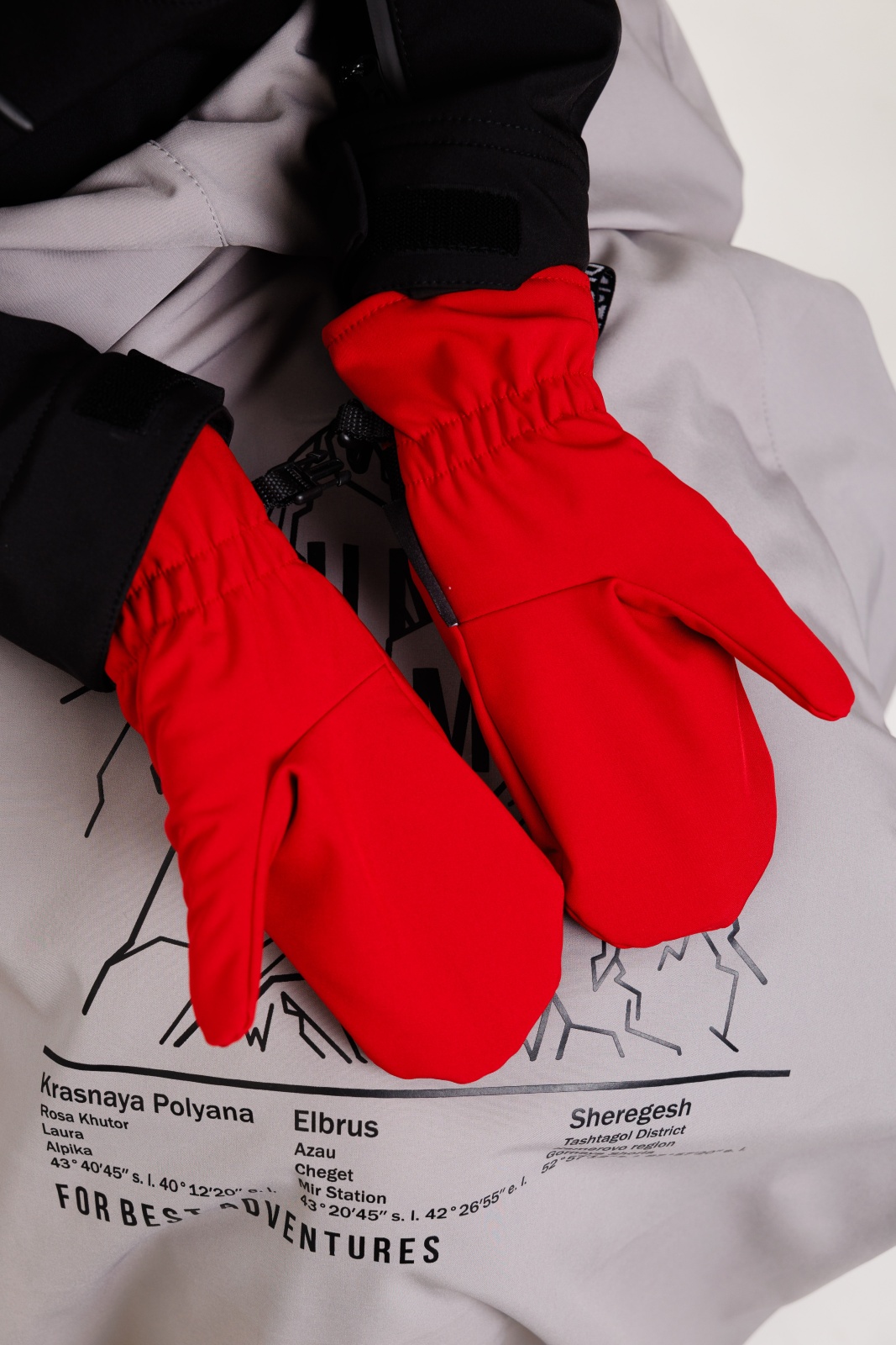 - Резинка и стропа на запястье: препятствуют попаданию снега внутрь варежек, обеспечивая дополнительную защиту.
