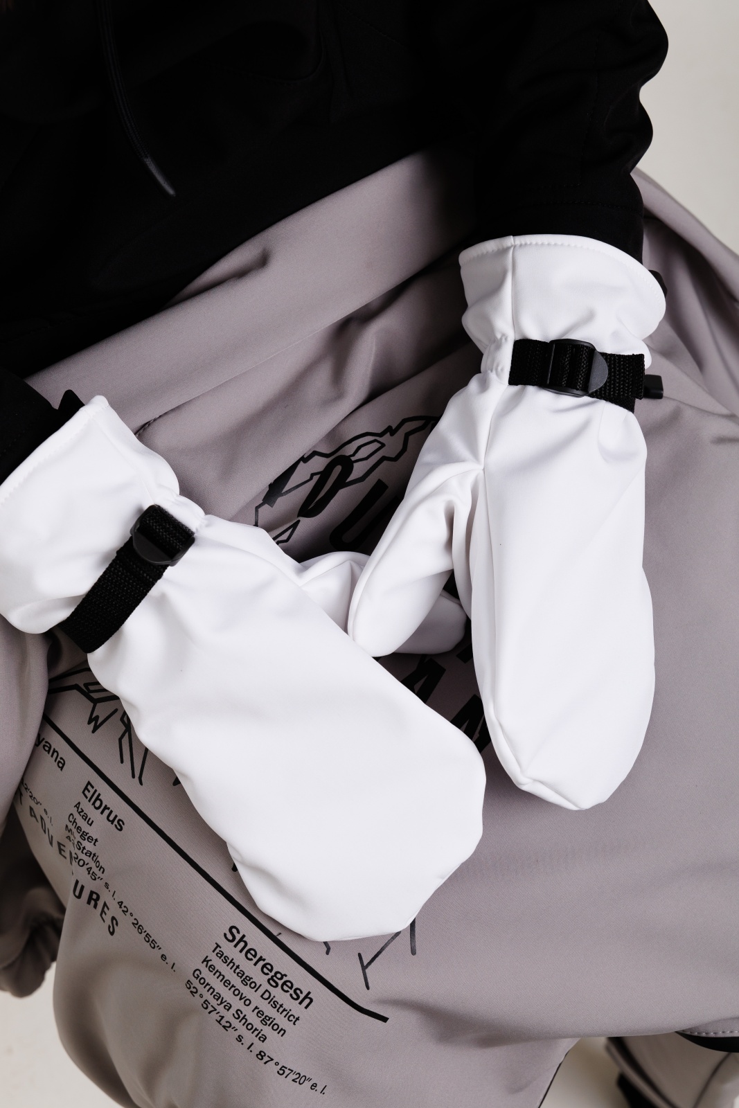 • Резинка и стропа на запястье: препятствуют попаданию снега внутрь варежек, обеспечивая дополнительную защиту.