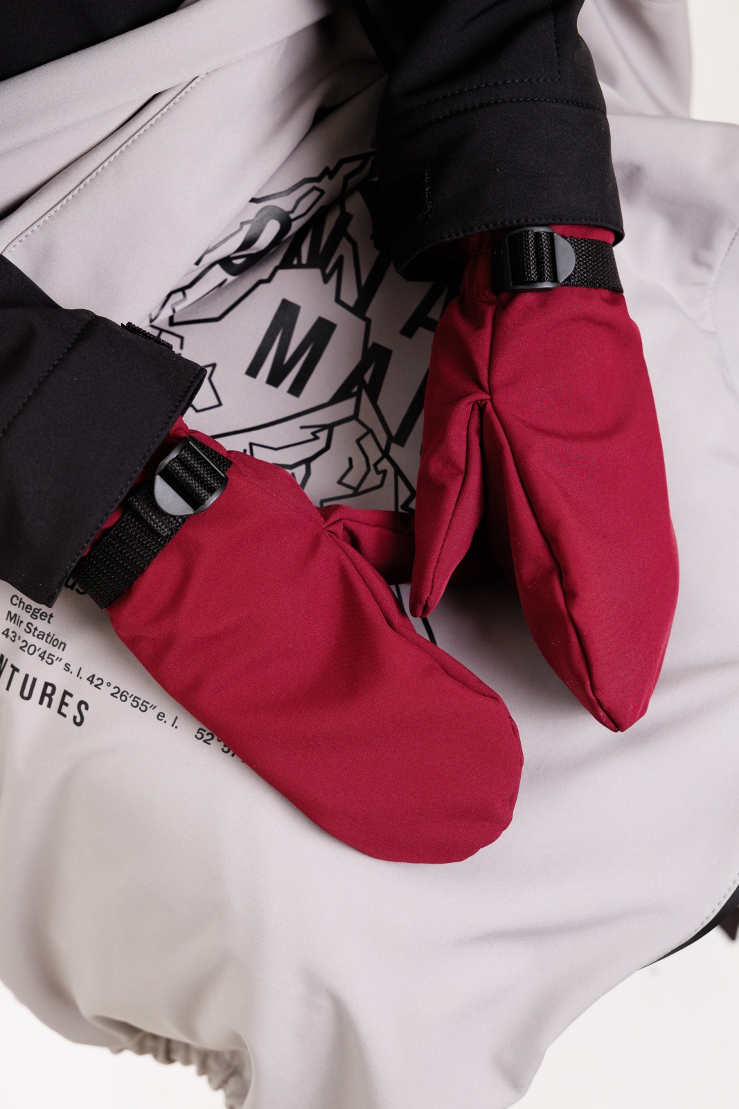 • Резинка и стропа на запястье: препятствуют попаданию снега внутрь варежек, обеспечивая дополнительную защиту.